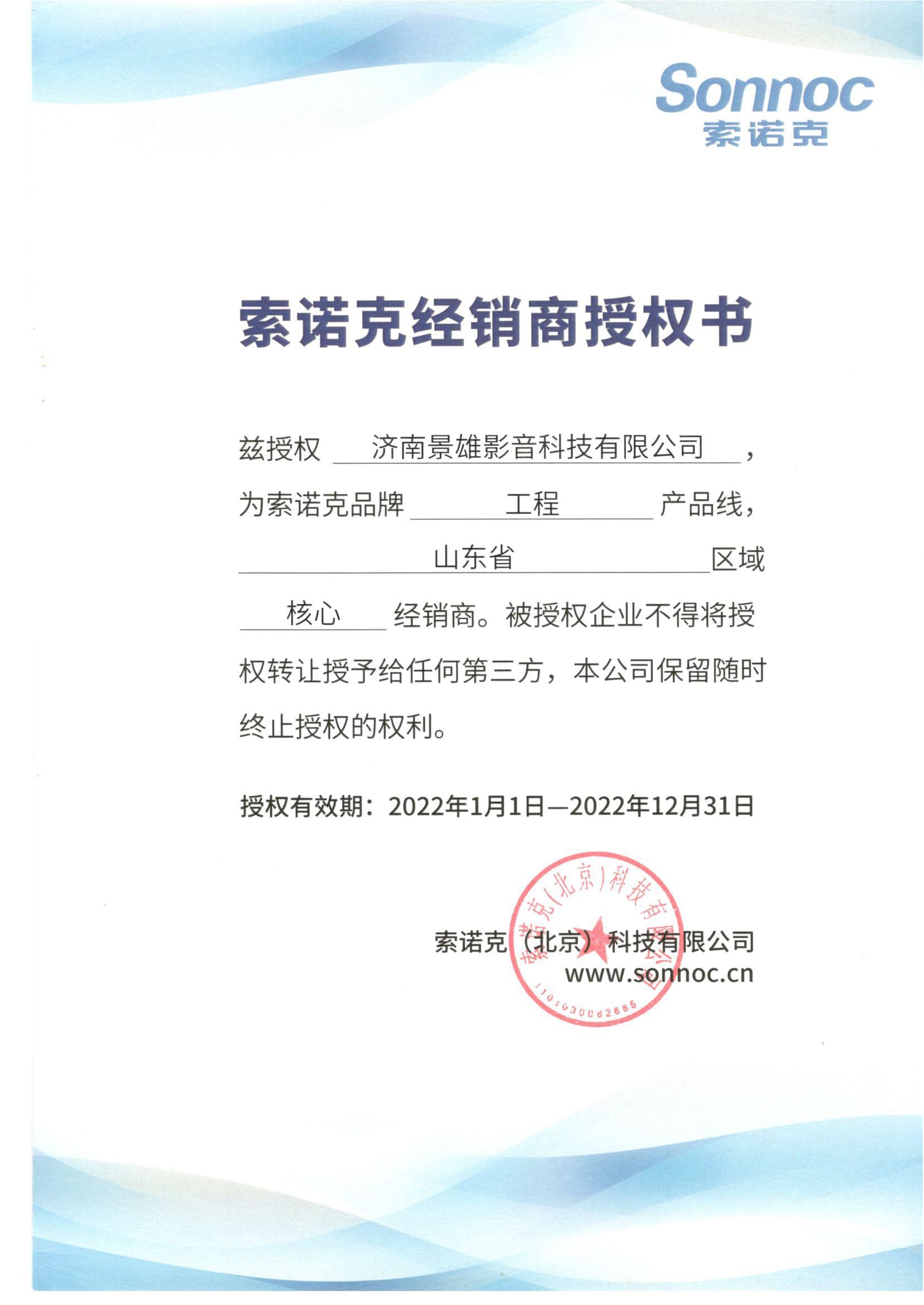 索諾克品牌授權(quán)書(shū)