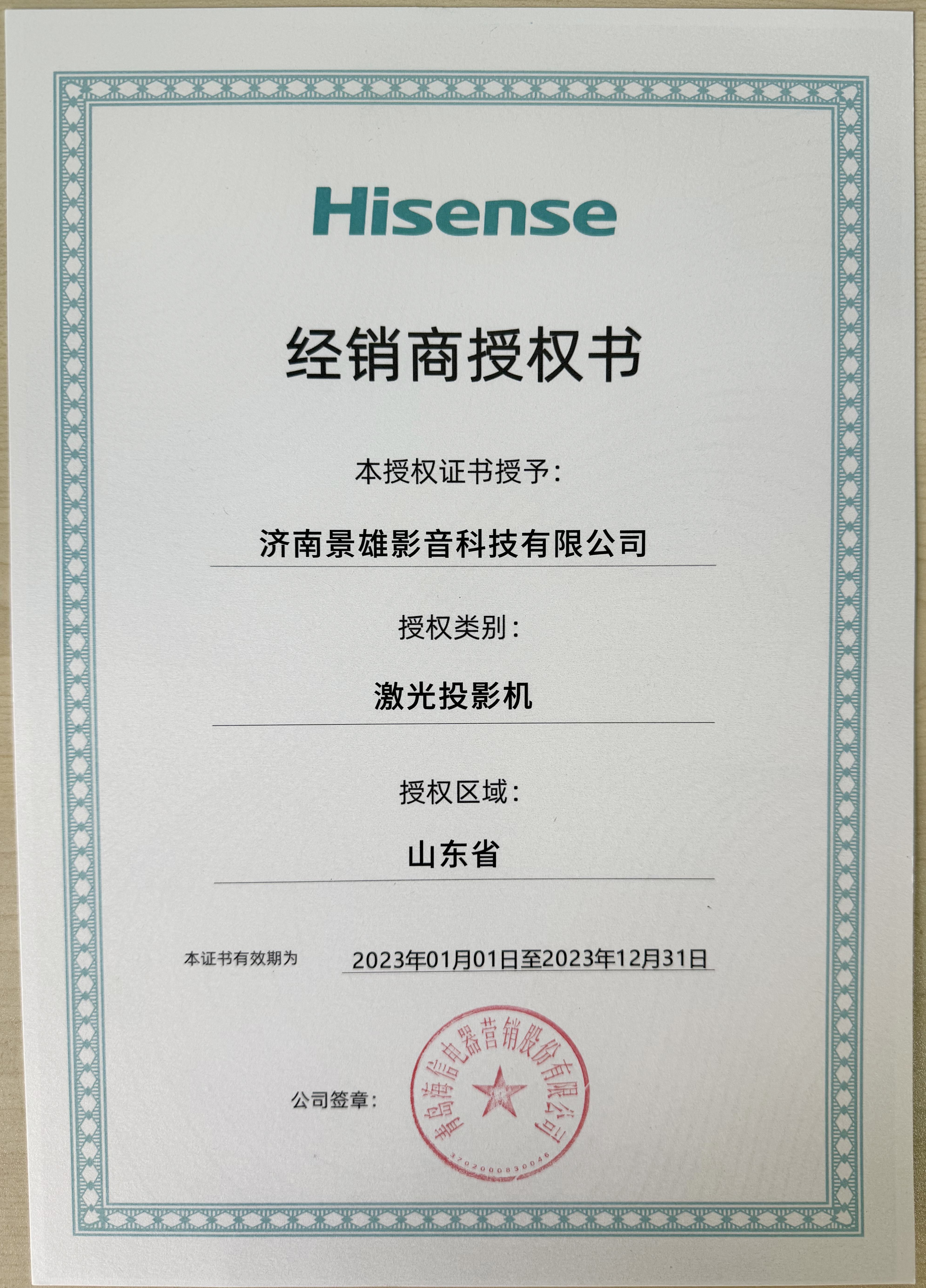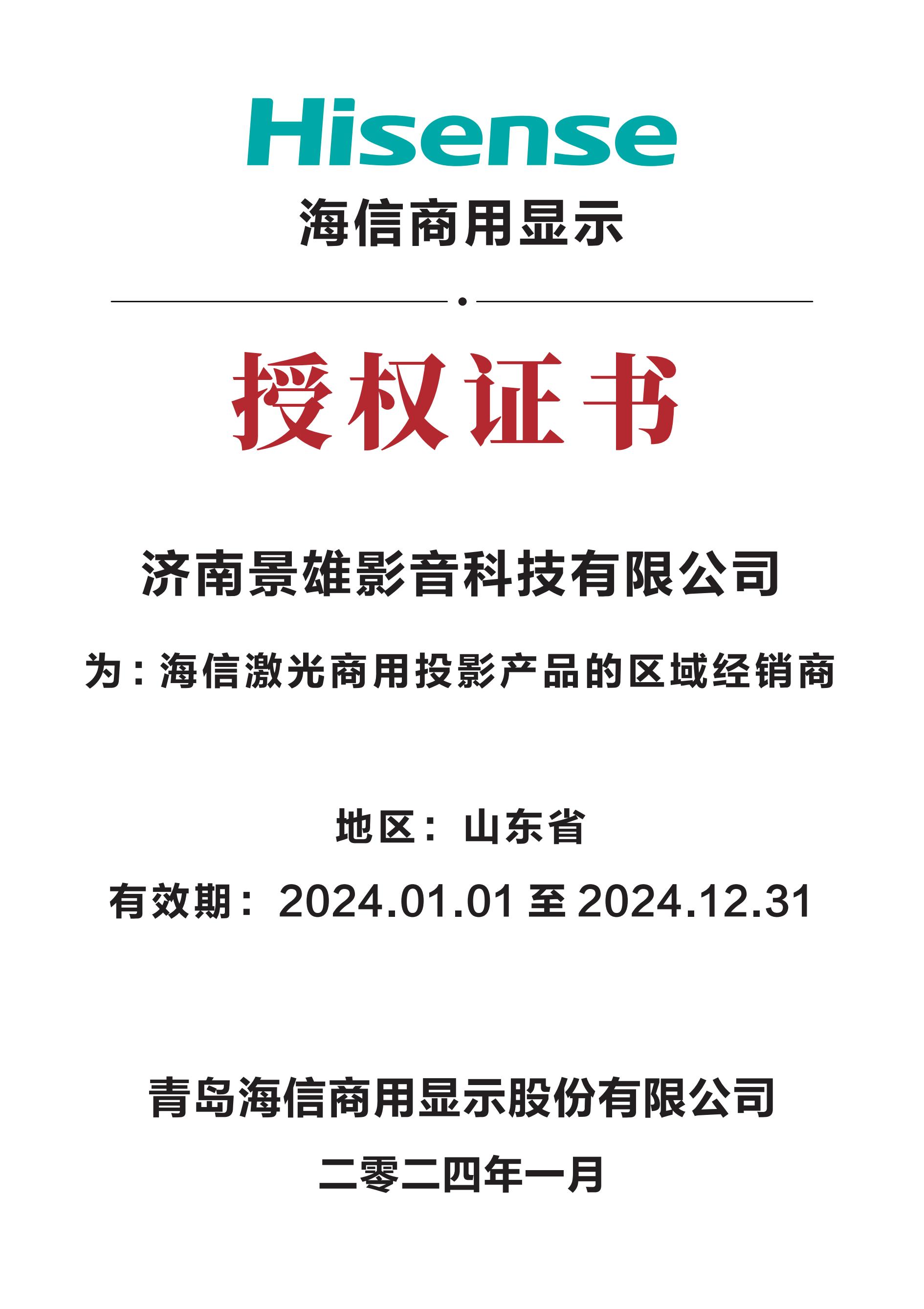 海信激光電視授權(quán)書(shū)