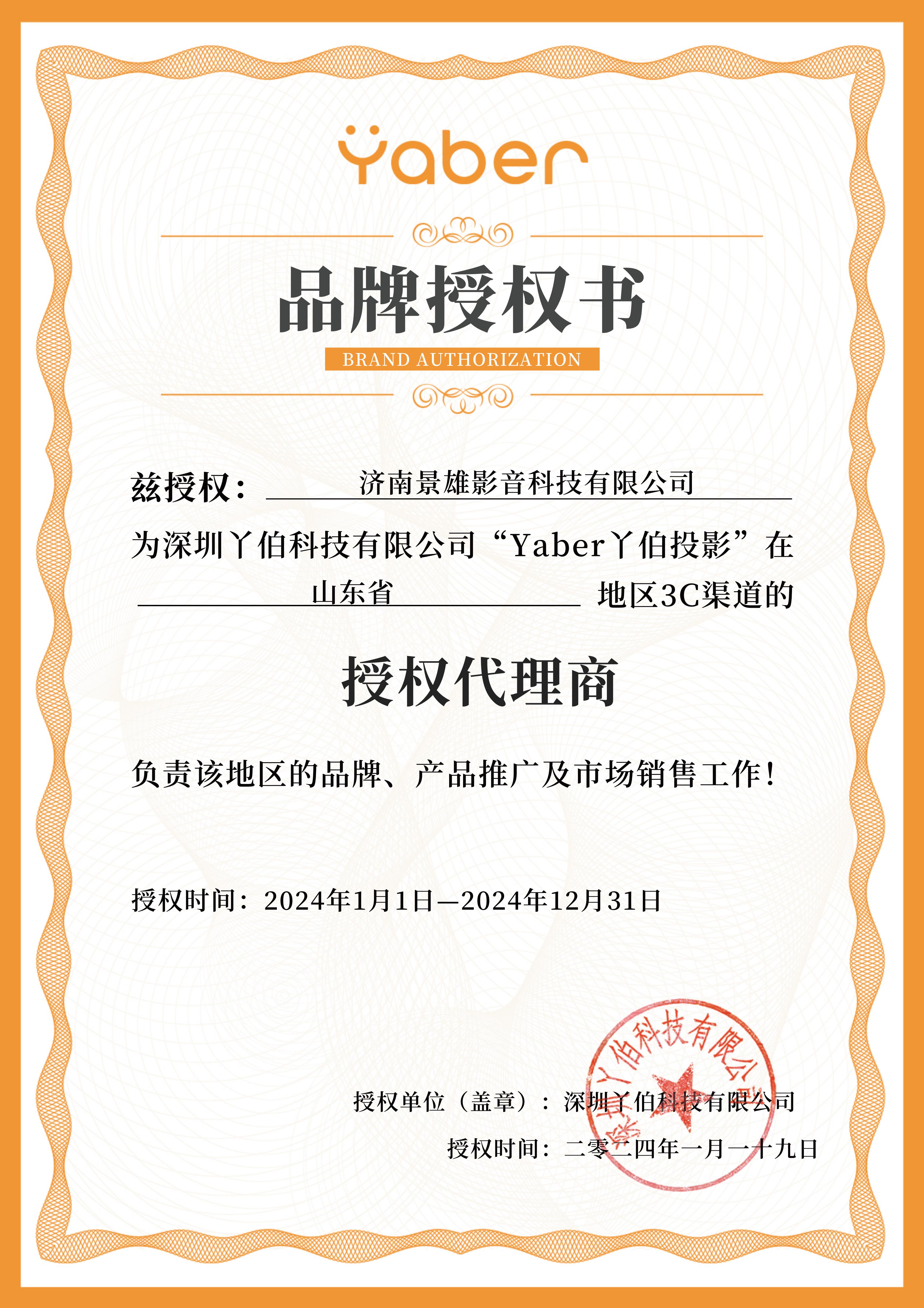 Yaber丫伯品牌2024年授權(quán)牌